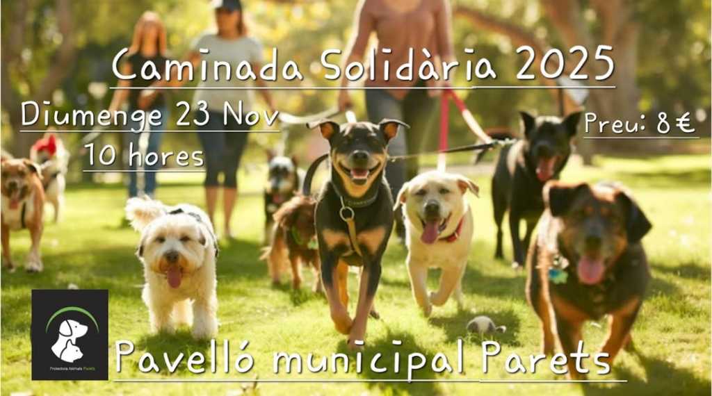 El domingo, 10 de noviembre, a las 10 de la mañana, desde el pabellón municipal de Parets, ¡daremos el pistoletazo de salida a una jornada increíble! Ven a caminar con nosotros y nuestros peludos amigos por una causa maravillosa: mejorar la vida de aquellos que no han tenido tanta suerte. Con solo 10€, tendrás un delicioso desayuno (bocadillo + bebida) y la satisfacción de saber que estás haciendo una gran diferencia. Toda la recaudación se destinará a saldar deudas veterinarias y a realizar dos operaciones urgentes que tenemos pendientes. ¡Tu ayuda es crucial! ¡No te lo pierdas! Reserva tu lugar y ven a disfrutar de un día lleno de risas, amor y solidaridad. ¡Te esperamos con los brazos abiertos y muchas ganas de pasarlo genial! en este enlace